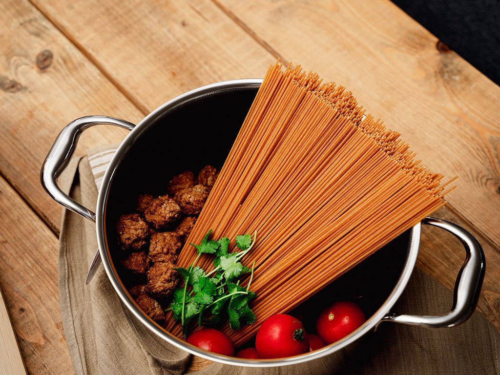 Men, og det er her vores køkkengrej virkelig adskiller sig fra resten - selvom vores gryder og saucegryder er non-stick, vil de sautere, svitse eller brune dit kød eller dine grøntsager til absolut perfektion. Mange gryderetter kræver, at du først sauterer eller bruner nogle grøntsager eller kød. I en almindelig gryde er det bare en forfærdelig oplevelse - og mange vælger at sautere eller brune i en separat pande. Der er også frustrationen ved at vente på, at en stor gryde med vand, koger - om det så er til pasta eller æg. Det føles som om, at det tager en evighed, og der er ikke noget værre end at skulle stå ved komfuret og tjekke gentagne gange for at se, om vandet koger - irriterende, ikke? Dette er endnu et problem, vi har løst for dig!