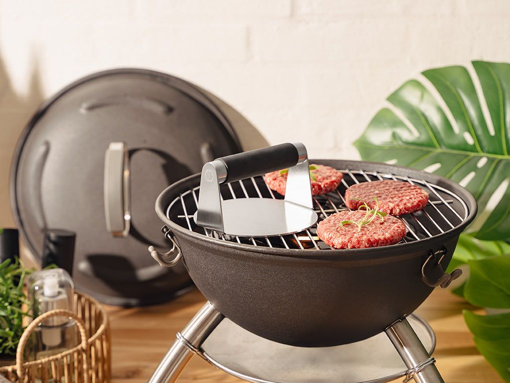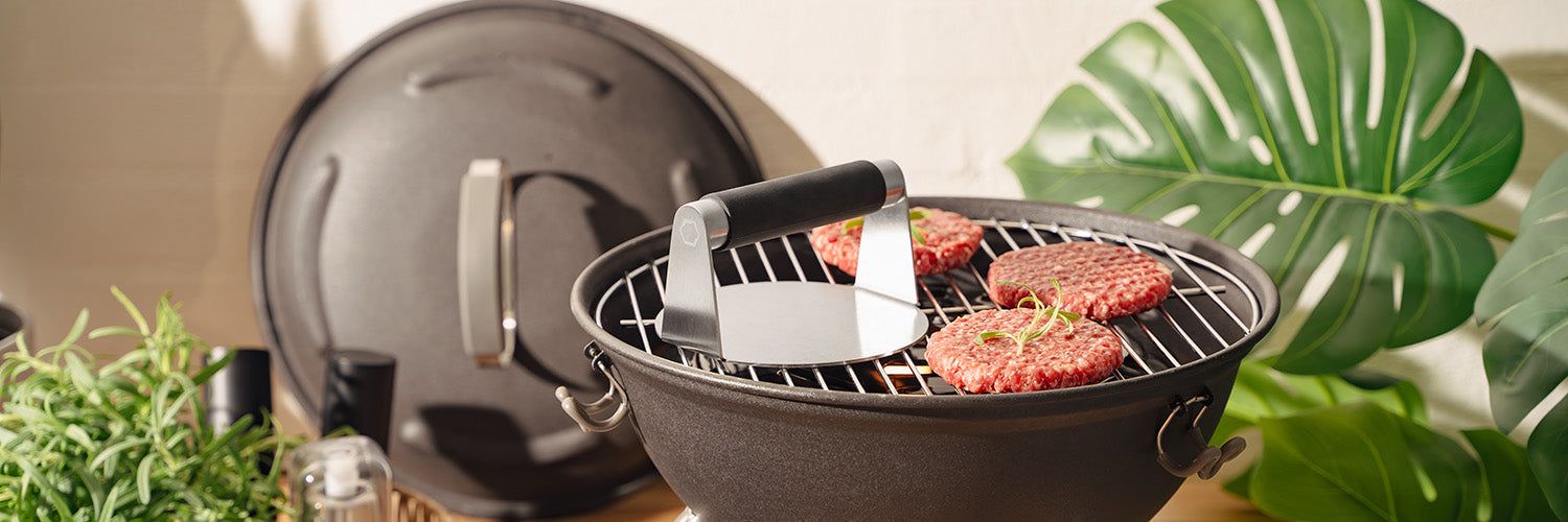 ONYX COOKWARE™ BURGER SMASHER – din ultimative grillkammerat, designet til at udmærke sig, hvad enten du griller indendørs eller under åben himmel.