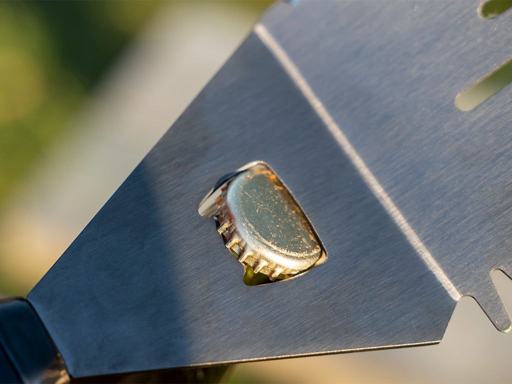 Og vigtigst af alt har den en integreret flaskeåbner – så du kan imponere alle til havefesten med dine ølåbningsevner.