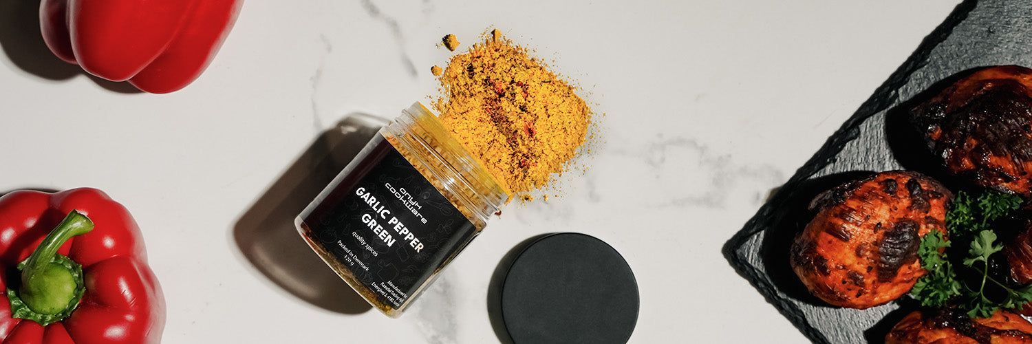 Dyk ned i den aromatiske symfoni skabt af vores HVIDLØGSPEBER GRØN. Den intense essens af hvidløg fletter sig ubesværet sammen med de lyse, pebrede noter fra grøn peber, hvilket tilføjer et dynamisk præg til dine opskrifter. Uanset om du krydrer kød, fremhæver salater eller infuserer saucer, tilbyder denne blanding en forførende harmoni, der forstærker smagsoplevelsen.