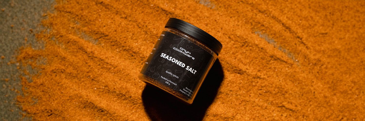 Vores ONYX COOKWARE™ KRYDDERSALT er en håndværksmæssig blanding, skabt for at forstærke smagen af dine retter. Vores krydrede salt er en symfoni af omhyggeligt udvalgte urter og krydderier, skabt for at bringe rigdom og aroma ind i hver kreation, du udforsker.