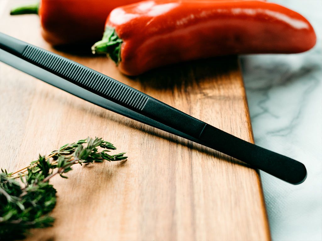 ONYX COOKWARE™ Madpincet er specefikt og gennemtænkt designet med justerbarhed og maksimalt greb i tankerne. Derfor er pincettens håndtag udstyret med strategisk placerede kanter i metallet der sikrer et fast og robust greb med maksimal komfort.