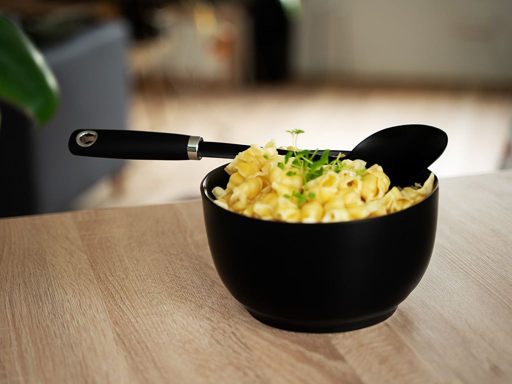 Belægningen af ONYX COOKWARE™ SOLID SKE er pletafvisende, hvilket holder produktet pænt under madlavning og gør det til en leg at rengøre bagefter. Det virker næsten som en synd ikke at håndvaske et produkt, der ser så godt ud, men vi lover, at grydeskeen er 100% opvaskemaskinesikker. Kernen i rustfrit stål fungerer perfekt sammen med ONYX COOKWARE™ MAGNETISKE KNIV-VÆGBESLAG, hvilket giver mulighed for praktisk opbevaring.