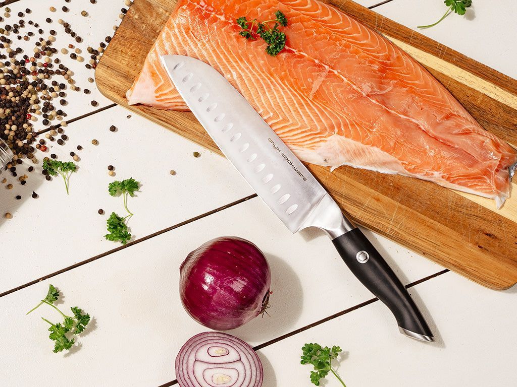 Uanset hvordan du bruger ONYX COOKWARE™ Santoku-kniven, er den bestemt til at blive en køkkenfavorit.