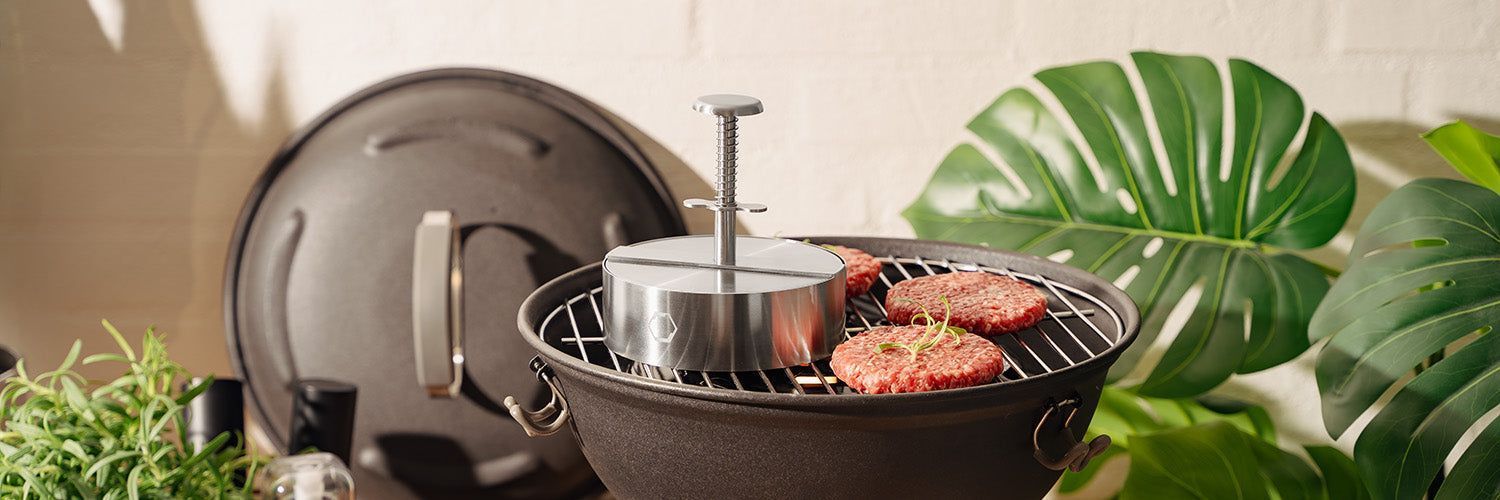 Så, uanset om du vender burgere i komforten af dit køkken eller omfavner det store udendørs, er vores bøfpresser det ideelle valg for at opnå den delikate burger smag og tekstur, du ønsker. Løft dit grillspil, uanset hvor du vælger at lave mad, med ONYX COOKWARE™ BØFPRESSER.
