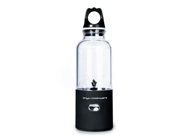 ONYX COOKWARE™ BÆRBARE JUICER er lige så praktisk som en vandflaske. Den passer perfekt i din pung eller rygsæk og fylder ikke mere end en almindelig flaske. Det enkle, sorte og gennemsigtige design passer til enhver pung, rygsæk og til ethvert kontorbord. Så du behøver ikke bekymre dig om, at ONYX COOKWARE™ BÆRBARE JUICER skiller sig ud i mængden eller får det til at ligne, at du har bragt en blender til arbejde. Hvis du vil bære endnu mindre, kan motoren og knivene også løsnes fra plastflasken og udskiftes med et praktisk låg for at give en endnu mere kompakt oplevelse.